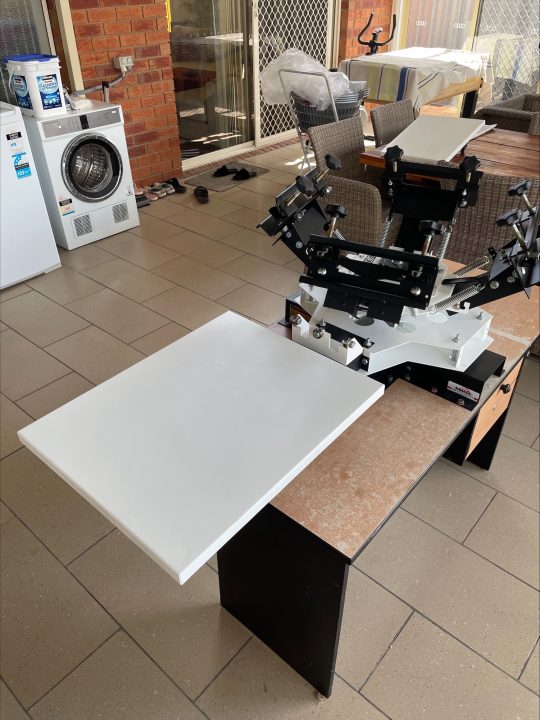 Lightly used Vastex V-100 4 Colour, 1 Station Carousel with one additional oversized platen.