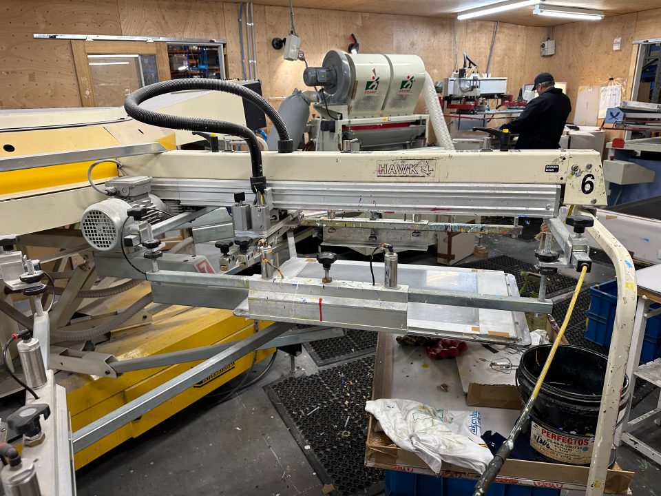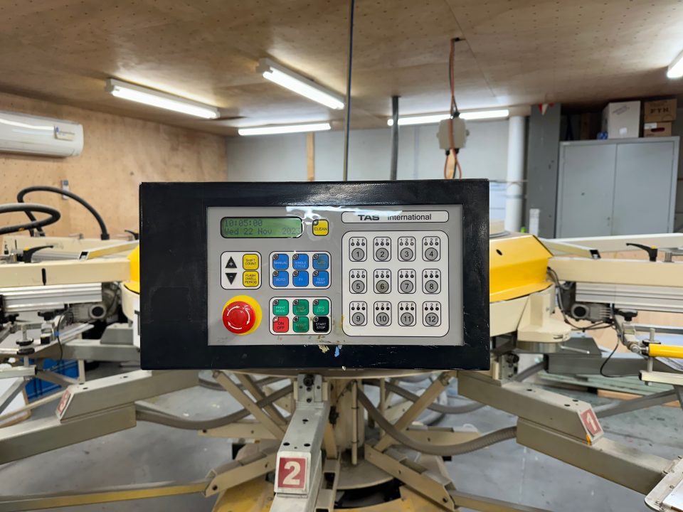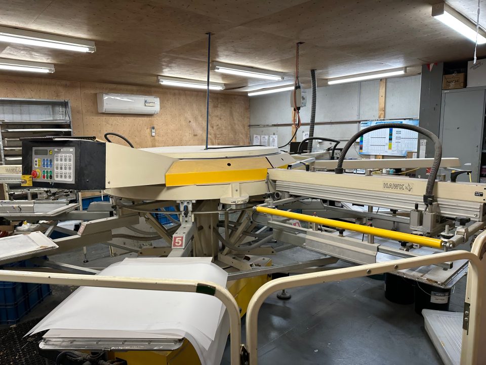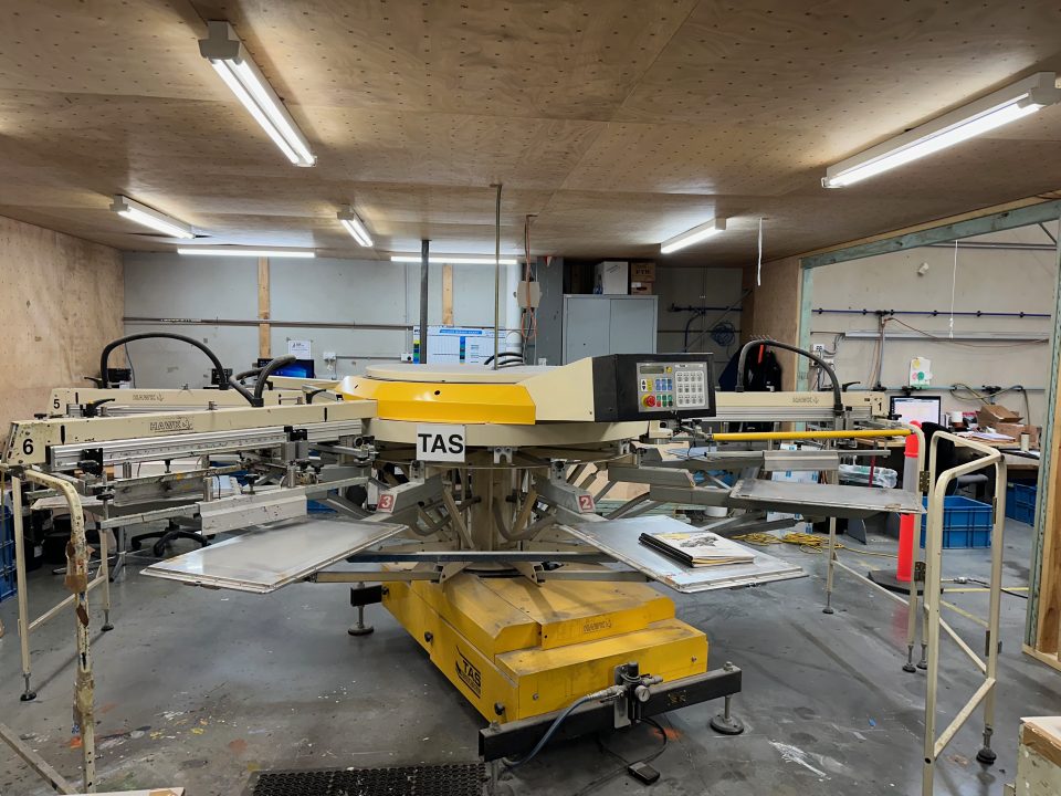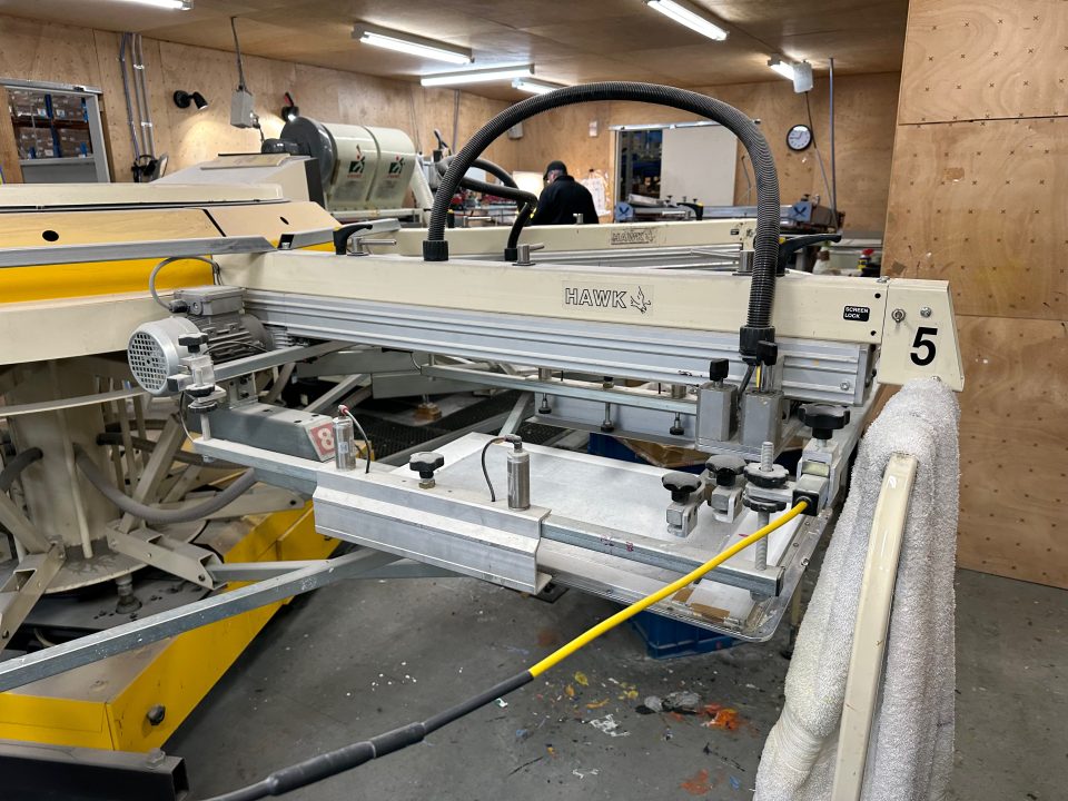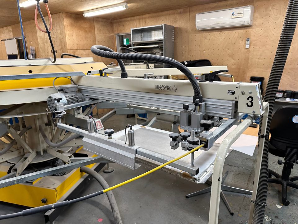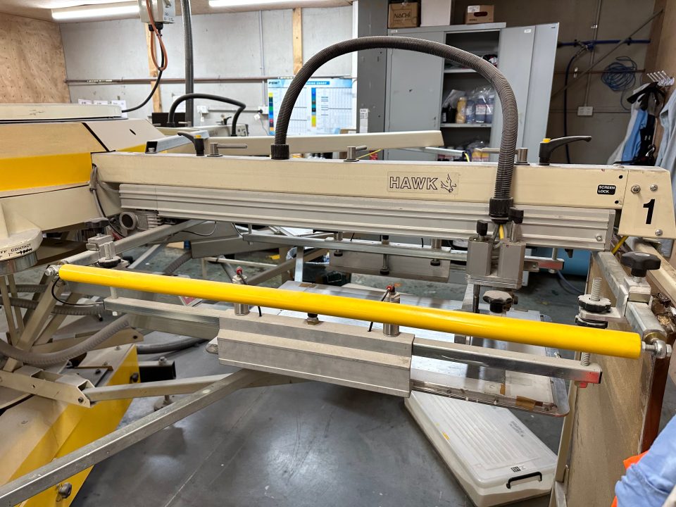 Well-maintained TAS Hawk auto carousel, ideal for screen printing operations.