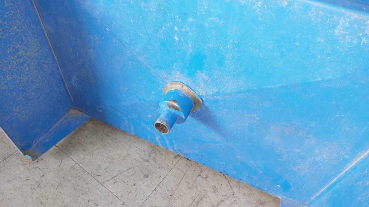 Durable powder-coated trough for screen cleaning.