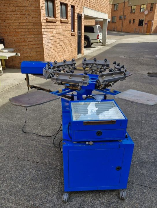 This complete used Printall screen printing setup is ideal for small to medium production print shops. All units are in good working condition and designed for both plastisol and water-based inks. Perfect for anyone looking for a ready-to-go screen printing solution.