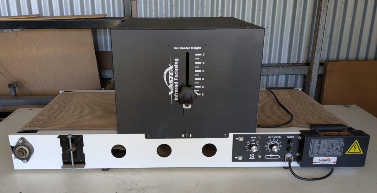 Used 2022 Vastex D-100 Infrared Tunnel Dryer in excellent condition with limited usage.